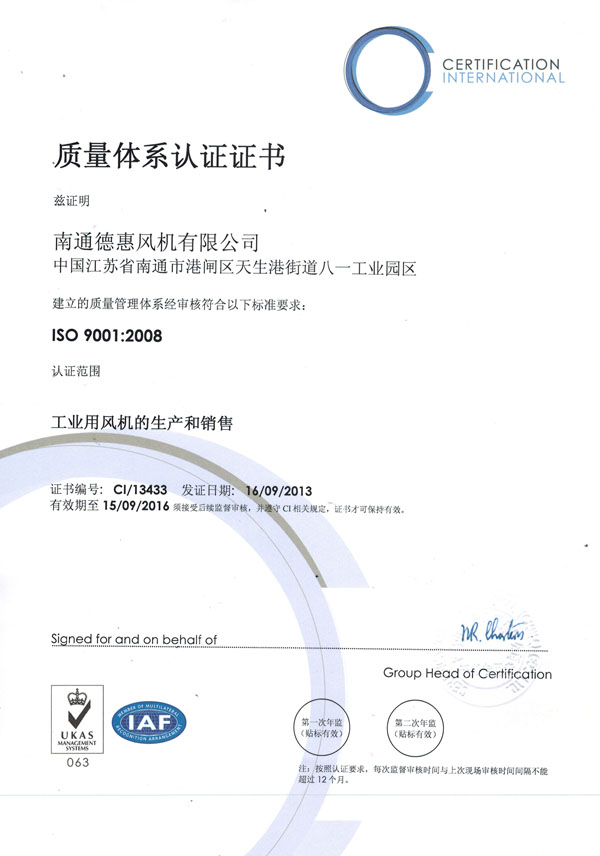质量体系认证证书